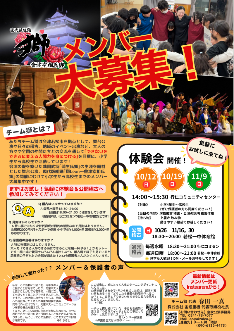チーム獅は、舞台活動を通じて子どもたちが自信と人間力を身につける「次世代育成プロジェクト」です。